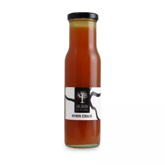 Hr. Skov's Hyben Coulis er en frugtsauce lavet på danske hyben med vanilje fra.