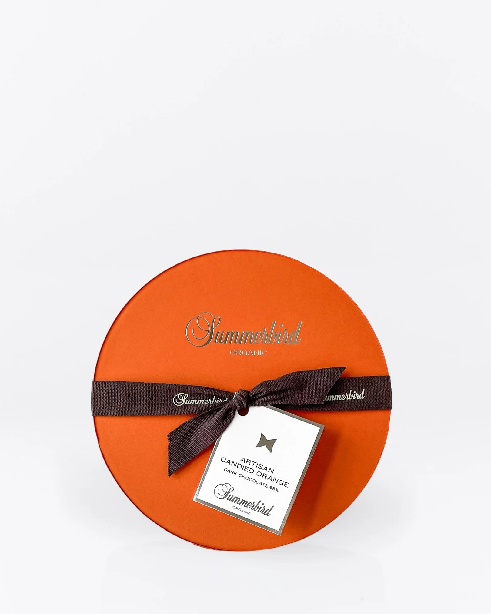 Kandiseret skal af solmodne økologiske appelsiner fra Spanien, overtrukket med et tykt lag mørk chokolade Arriba Nacional 68% og afslutningsvist drysset med let ristede knuste kakaobønner af sorten Arriba Nacional.
