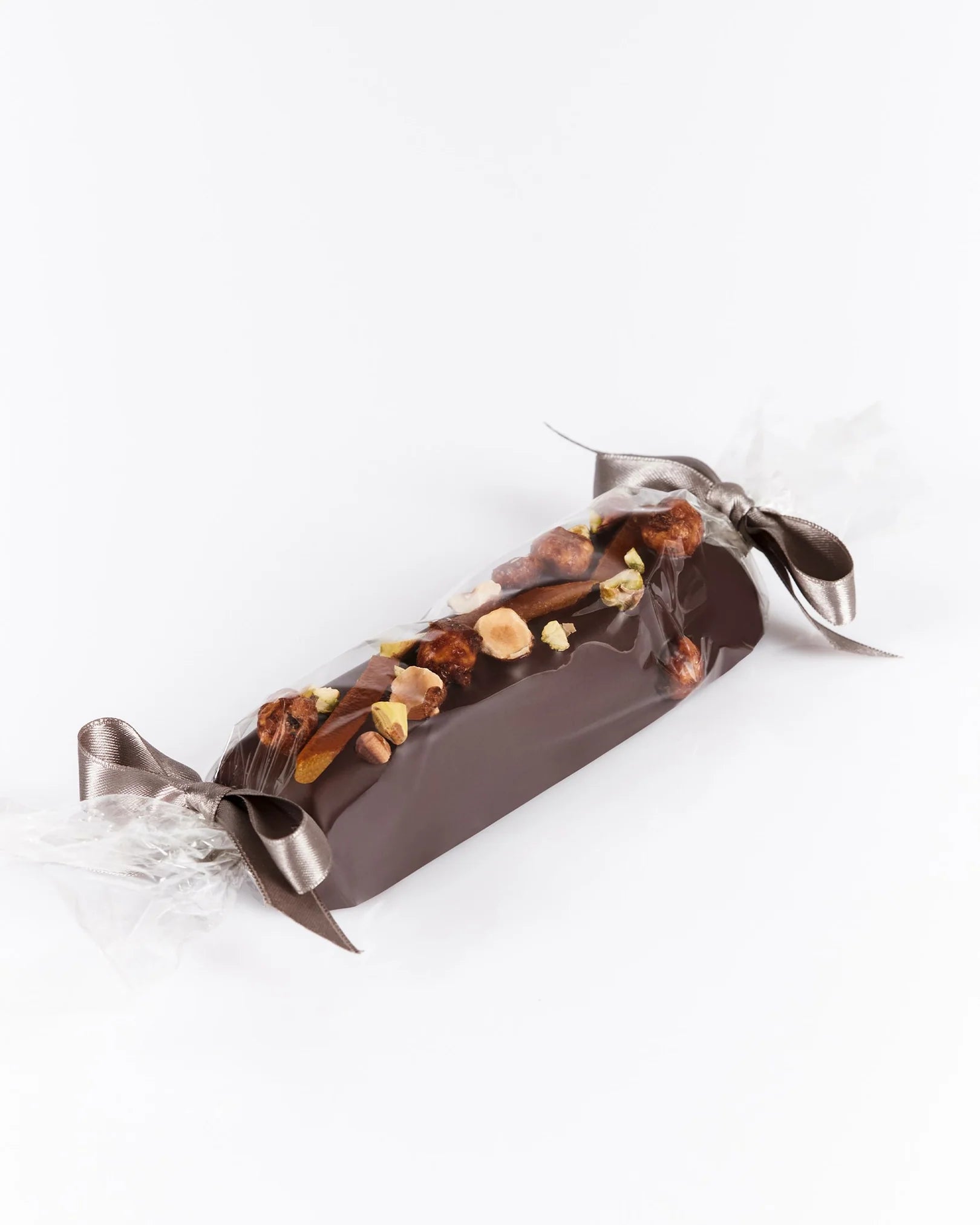 Overtrukket med mørk chokolade Arriba Nacional, baseret på kakaobønnen Arriba Nacional, der vokser langs Guayas-floden i Ecuador og anses for at være blandt de fineste i verden.