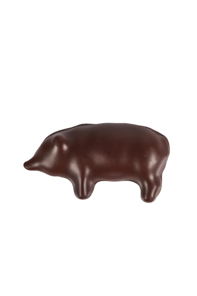 Klassisk miniature-landgris af marcipan, lavet på stenvalsede middelhavsmandler, overtrukket med et lag mørk chokolade Amazonas 61 %.