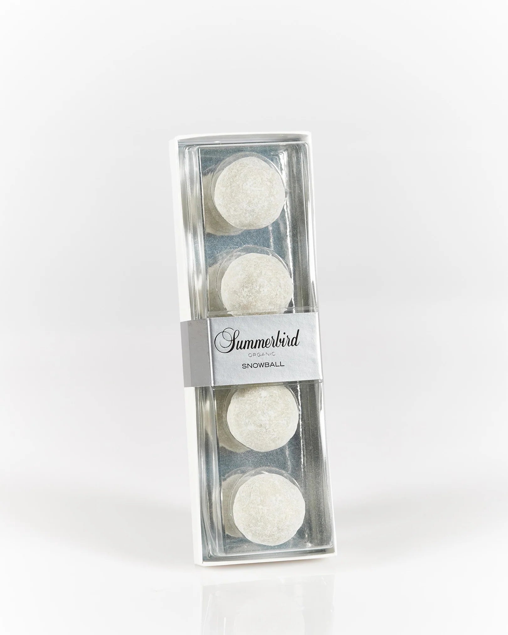 Snowballs er en perfekt konstellation af nougat og marcipan, der er overtrukket med mørk chokolade Amazonas 61 % og herefter drageret i den prisvindende hvide chokolade, White Vanilla.