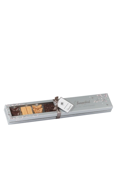 Den smukke æske indeholder en serie nøje udvalgte varianter af Summerbirds ikoniske og raffinerede miniaturechokolader.